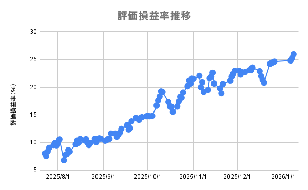 今の価値が、買った時と比べてどれくらい増えたか(または減ったか)の割合です。