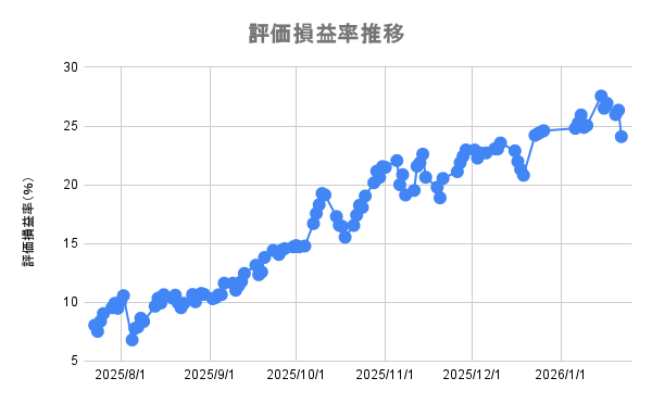 今の価値が、買った時と比べてどれくらい増えたか(または減ったか)の割合です。